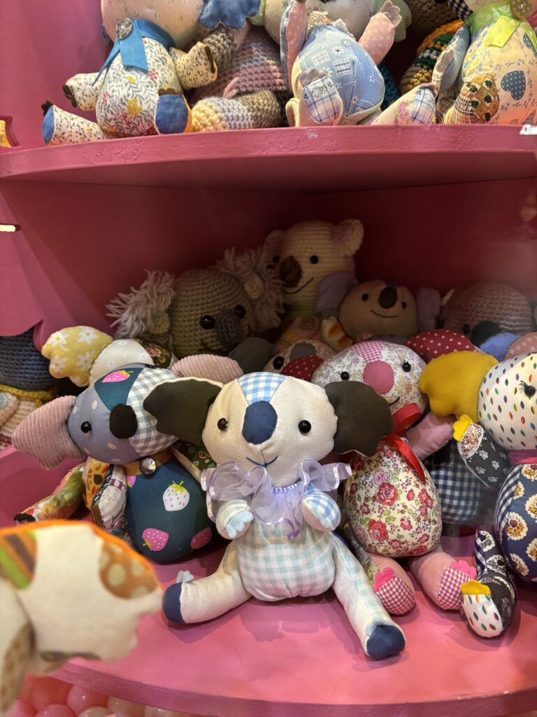 のテーマである「いつもほがらかごきげんコアラちゃん」のぬいぐるみがたくさん飾られて